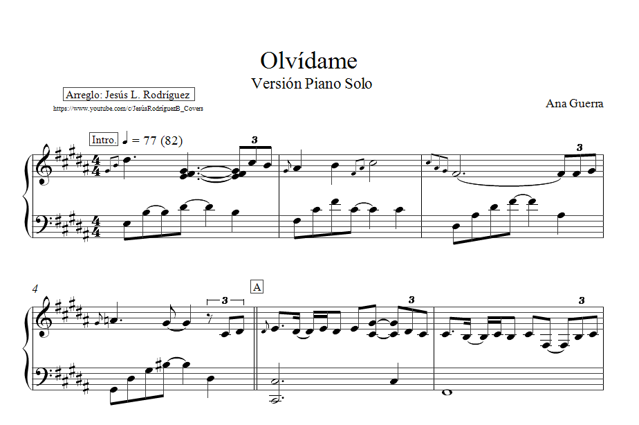 Partitura de mi arreglo de la canción Olvídame, de Ana Guerra.